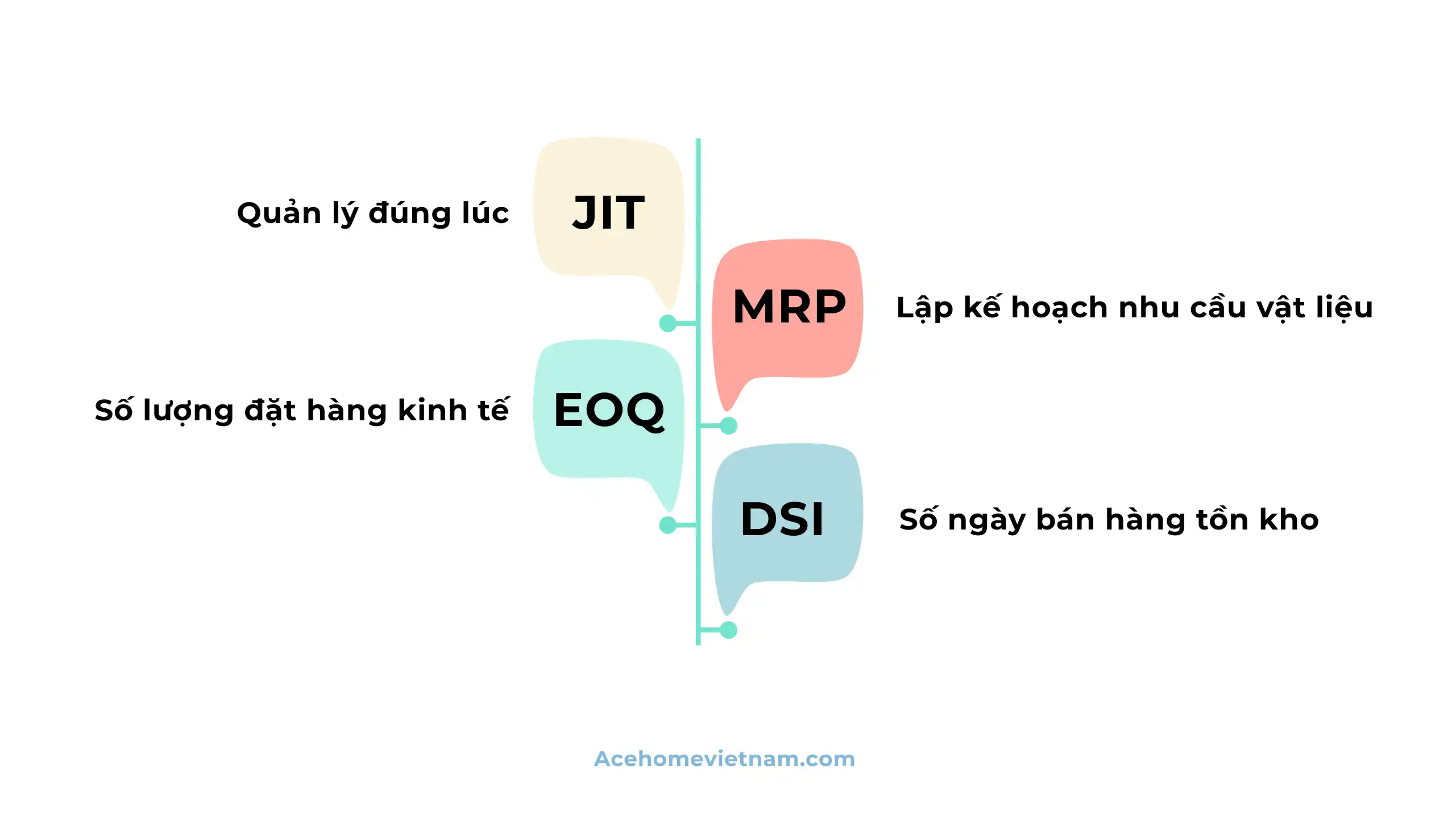 - EOQ – Số lượng đặt hàng kinh tế. Giúp doanh nghiệp tính toán số lượng hàng cần nhập mỗi lần. Để cân bằng giữa chi phí tồn kho và chi phí đặt hàng.